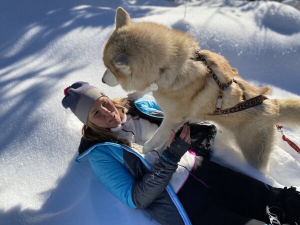 Mikina zvládá i hrátky s vlkem (dobře, tak huskym)