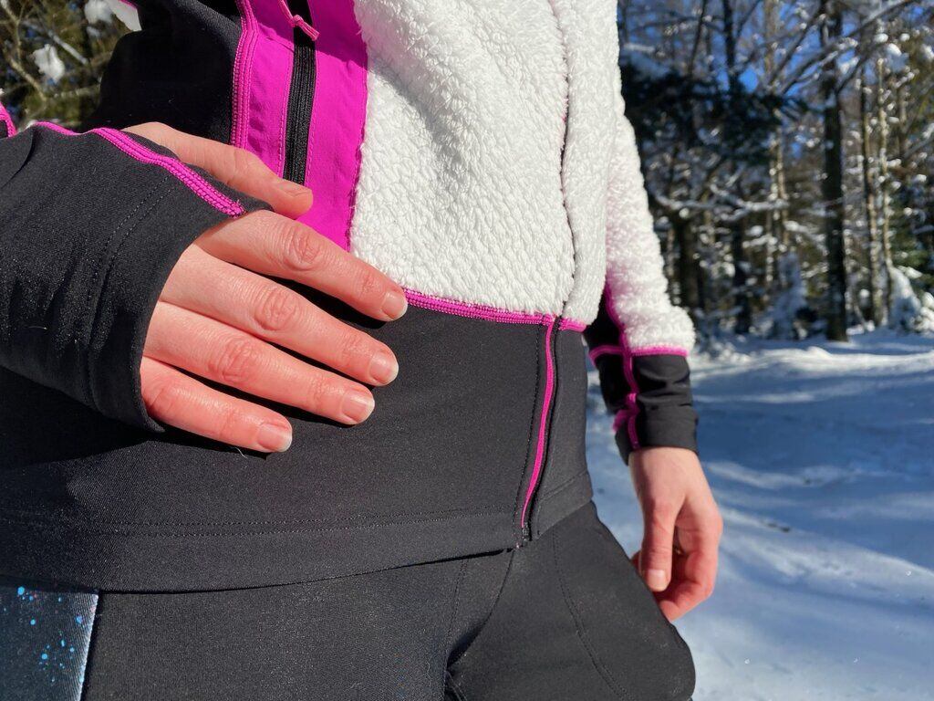 Strečové panely jsou šikovně vedeny tak, aby co nejlépe zvýraznily siluetu. Heboučký huňatý chlup je sice příjemný na dotek, ale u těla na předním panelu je ještě překryt jemnou podšívkou, která je k pokožce také velmi příjemná.