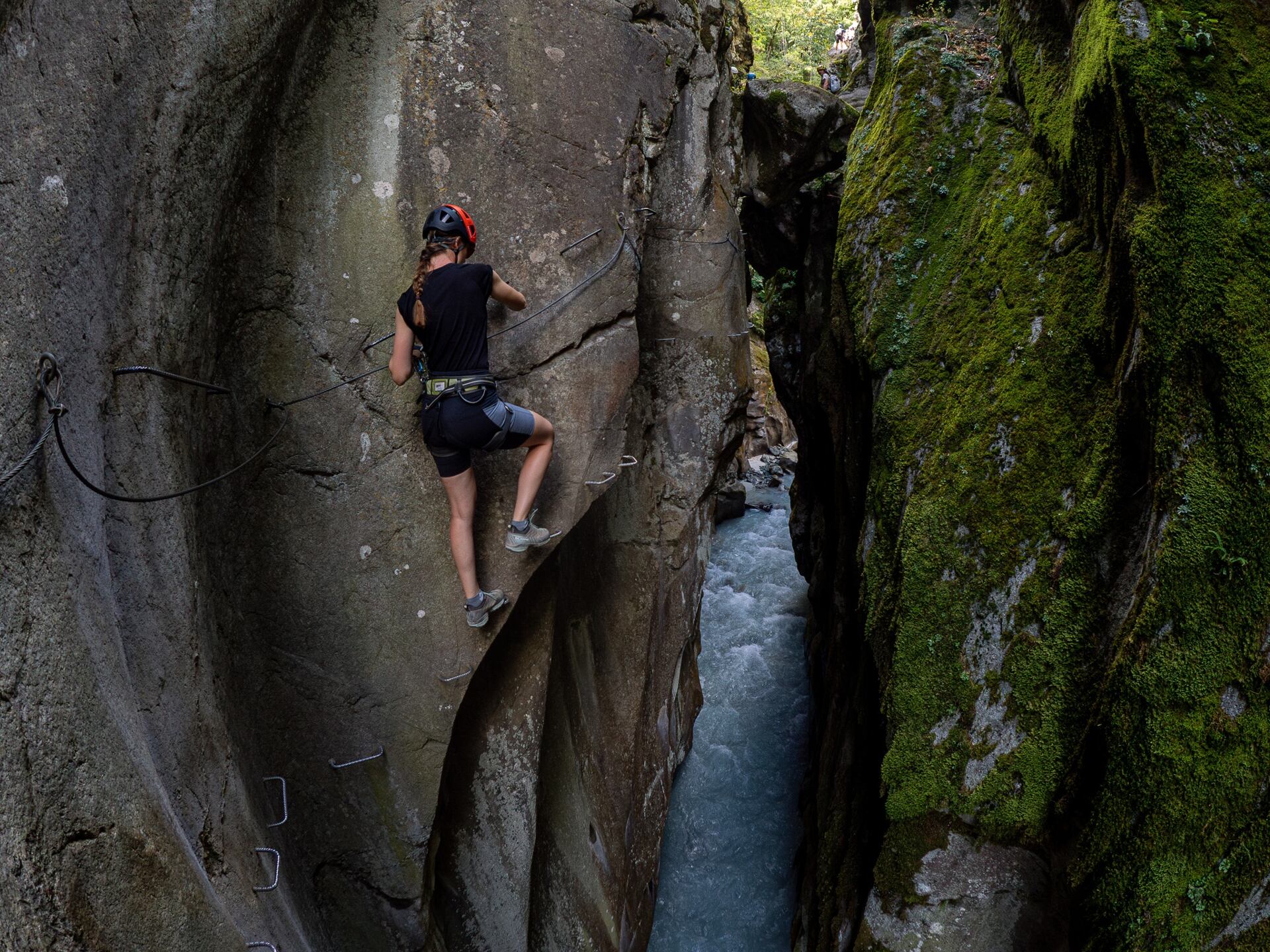 Vysoce technická a silová ferrata, často převisy bez opory nohou, jen pro experty