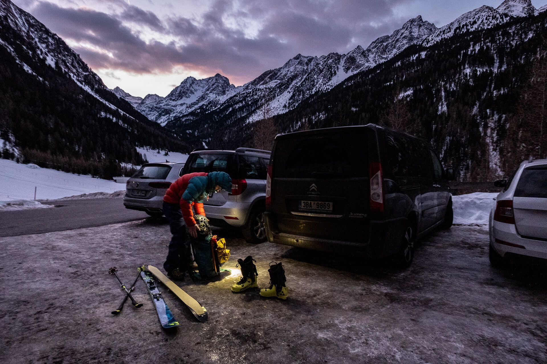 Chtěli jsme jet s Lukym na ledy. Jenže zaúřadovalo teplo, podmínka na lyže se zdála být všelijaká a tak jsme to odpískali zcela. A pak se Luky znova ozval a v jedenáct večer jsme se domluvili, že další den na skialp přeci jen pojedeme. Nejspíš.