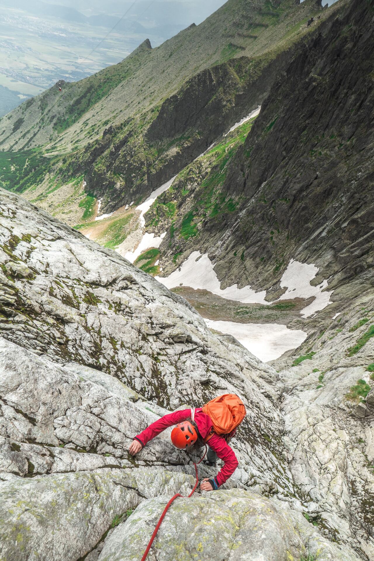 V Tatrách jsem se bohužel stihl s Dragontailama otočit jen jednou, zato pořádně. Prolítl jsem v nich většinu jižní stěny Kežmarského štítu mixem cest „Lavé vhlbenie“ a „Obrovský kút“. Je to zhruba 700m štreka, ve které člověk narazí na kopu lehkého terénu do 4+, což v mém podání spolu s mým parťákem znamená lezení hezky v italském stylu. Souběh na krátkém laně a v botách. Z celé cesty jsem lezečky obul asi na tři 50m délky, zbytek jsem odlezl v Dragontailech. Jaký to byl pocit?