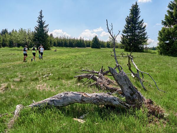 Za sebou máme 30 km a před sebou posledních 20 km. Uff, to už dáme! Pořád se vlníme ve výšce okolo 900 m n. m. mezi Kohoutím a Mezihořským vrchem.