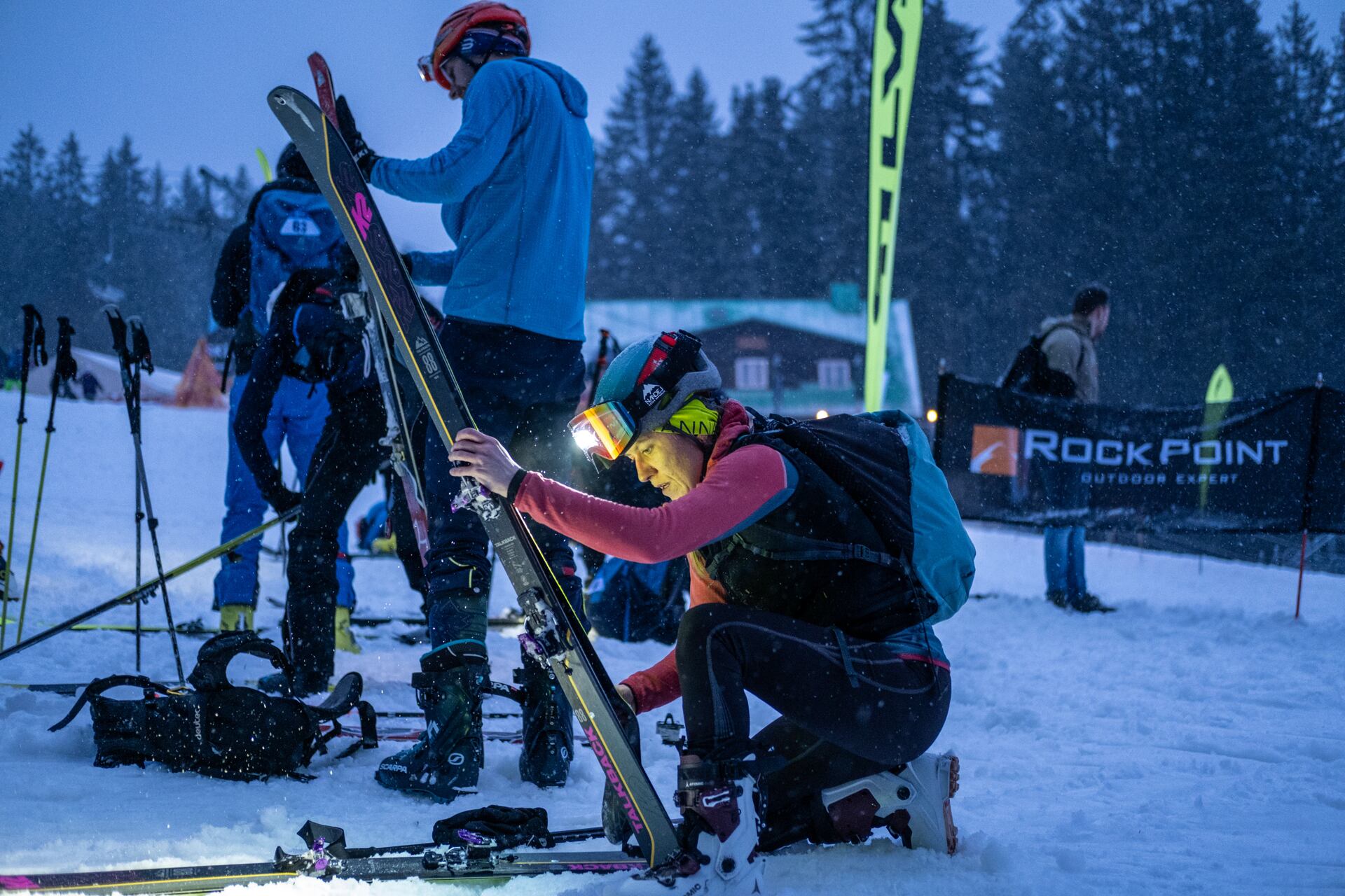 Rock Point skialp station po celý den připravovala skialpové vybavení pro testování všem zájemcům