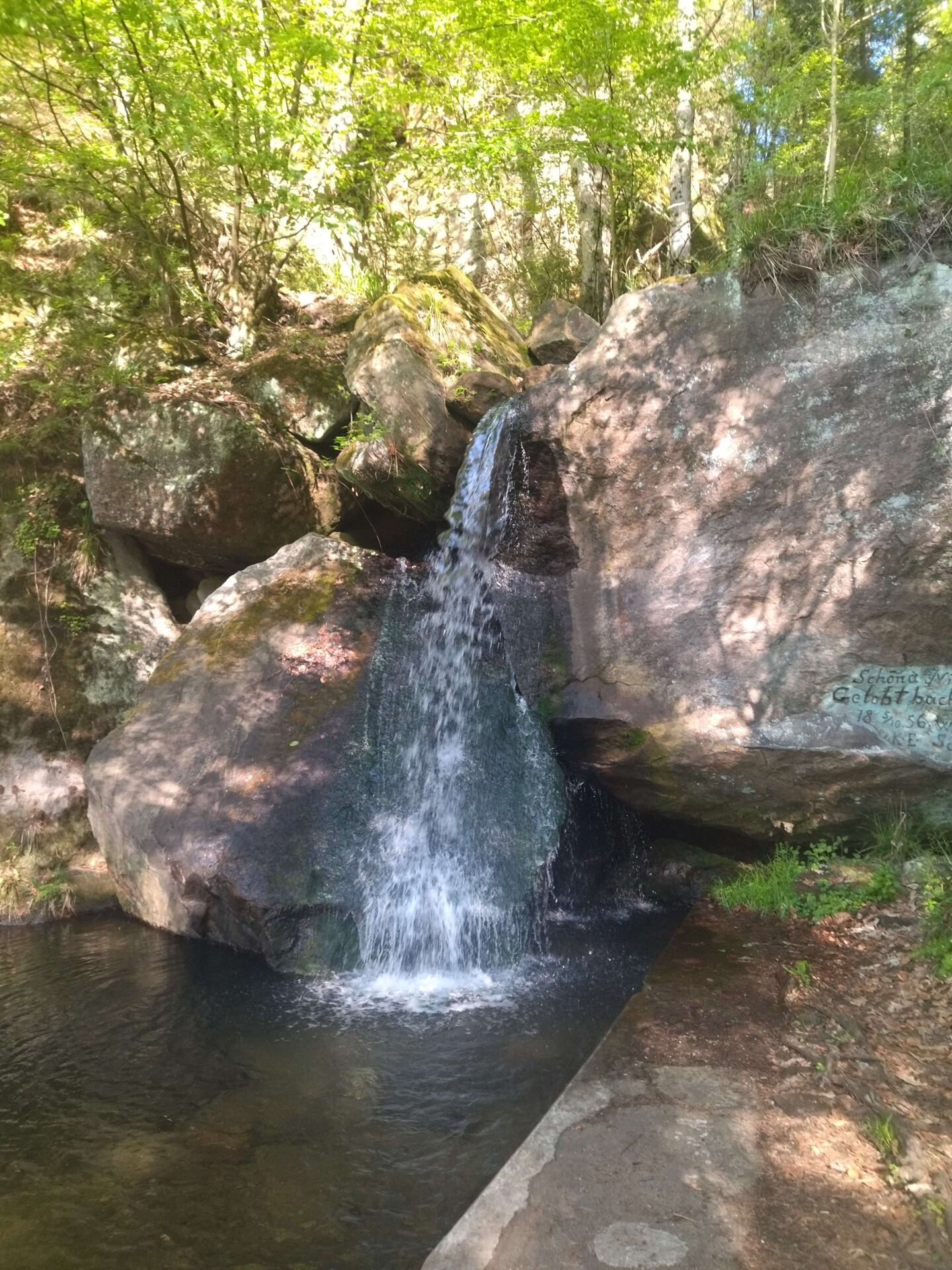 Dopoledne ještě zpočátku mrholí a vyhlídky jsou stále zamračené, i tak stojí za návštěvu. Krásný je i les, kterým procházím. Díky dešti a mlze má tajemnější atmosféru, svěží jarní zelený odstín listnatých stromů a keřů skoro září na pozadí tmavšího lesa a ptáci koncertují bez ohledu na počasí. Zastavuji u chaty Rotsteinhütte, dvě dívky tu ještě u kamen suší vybavení, tak je chata příjemně vytopená. Obědvám na vyhlídce Rosenthal, přístřešek je opět velikonočně vyzdobený, ale dost tu fouká, tak se nezdržím dlouho a pokračuji zpátky do lesa.