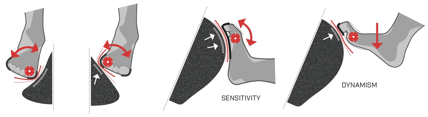 D-TECH™ - podešev obepíná botu po stranách, takže zcela eliminuje boční hrany a zajišťuje dokonalou dynamickou oporu a roztažitelnost na nejmodernějších tvarech umělých stupů. Zmenšený objem paty umožňuje maximální přesnost při patování.