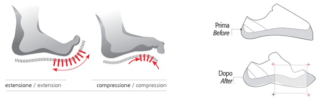 P3 system - patentovaný konstrukční systém zachovává obloukový tvar lezecké boty beze změny, aniž by došlo ke snížení původního výkonu a síly tlaku, a to i po letech intenzivního používání.