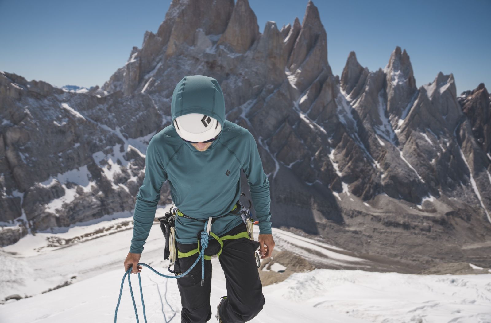 Pro dlouhé, exponované výstupy, odpočinek na vrcholu a slunečné chvíle na skalách vás mikina Black Diamond Alpenglow Hoody ochrání, když opalovací krém nestačí.
